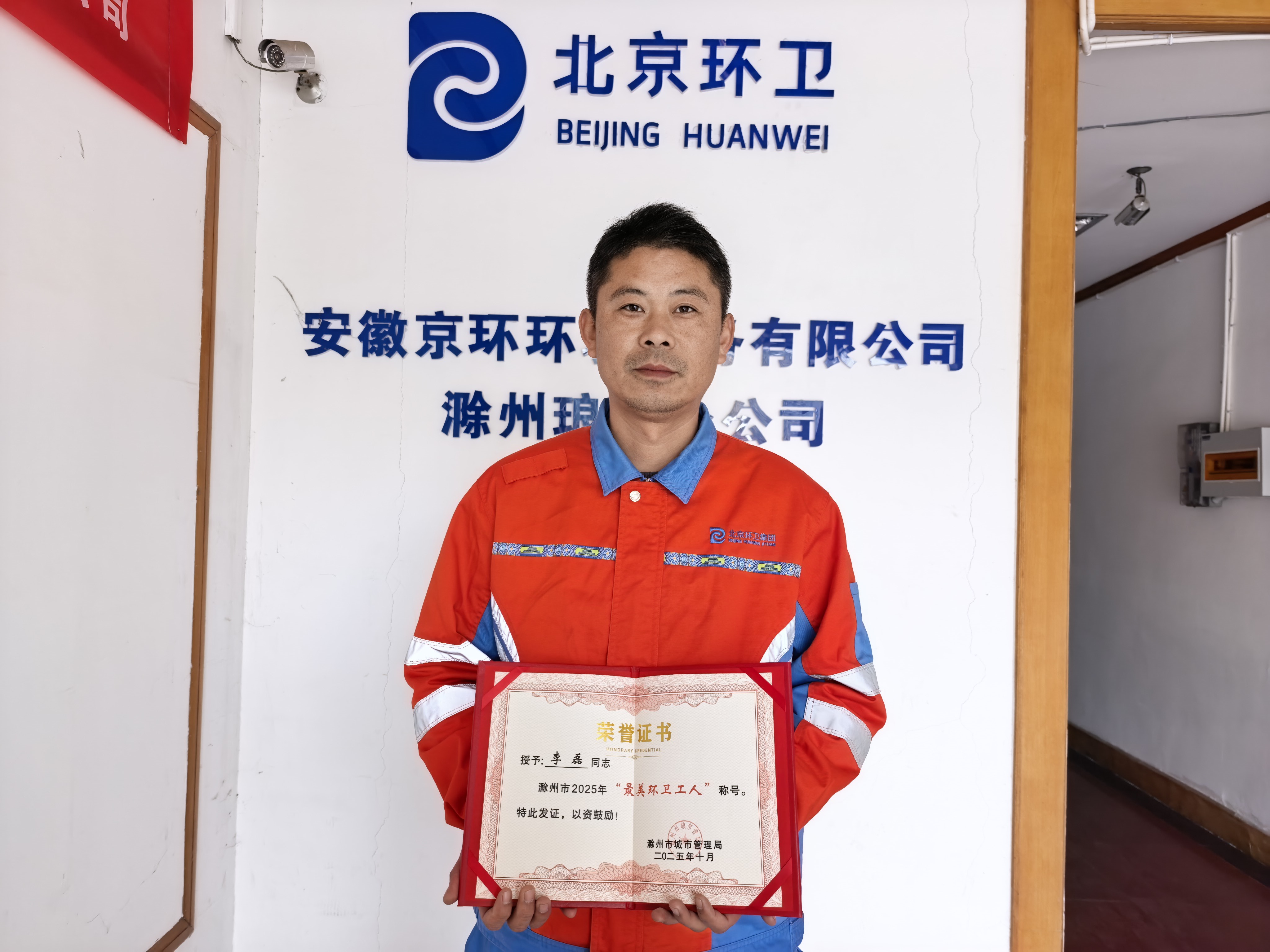 李磊,男,1985年7月出生,2005年参加工作,现任安徽京环滁州琅琊分公司车队长。自2019年加入公司以来,他始终扎根环卫一线,将满腔热忱奉献给城市洁净事业。凭借勤奋肯干的作风、精湛过硬的技能与危急时刻的勇敢担当,他赢得了广泛赞誉,先后荣获“滁州好人”、“滁州市最美环卫工人”以及“时传祥作业质量奖”先进个人等多项荣誉。2025年10月,他再次荣获滁州市“2025年度最美环卫工人”称号。